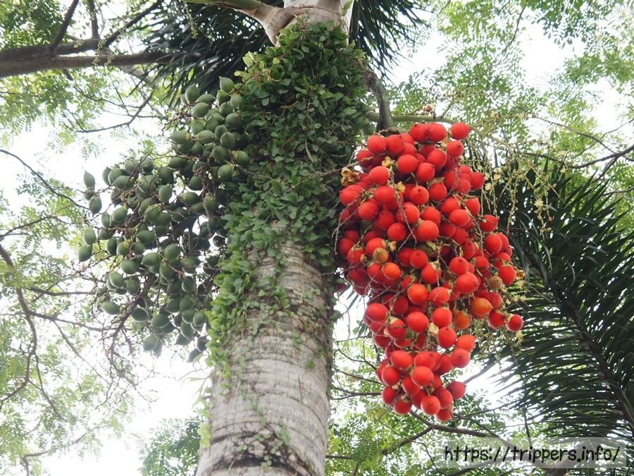 椰子の木です。マラッカの特産として椰子の樹液を煮詰めて作られる黒砂糖、グラ・マラッカが有名です。他にも着生蘭等の着生植物も見かけました。
