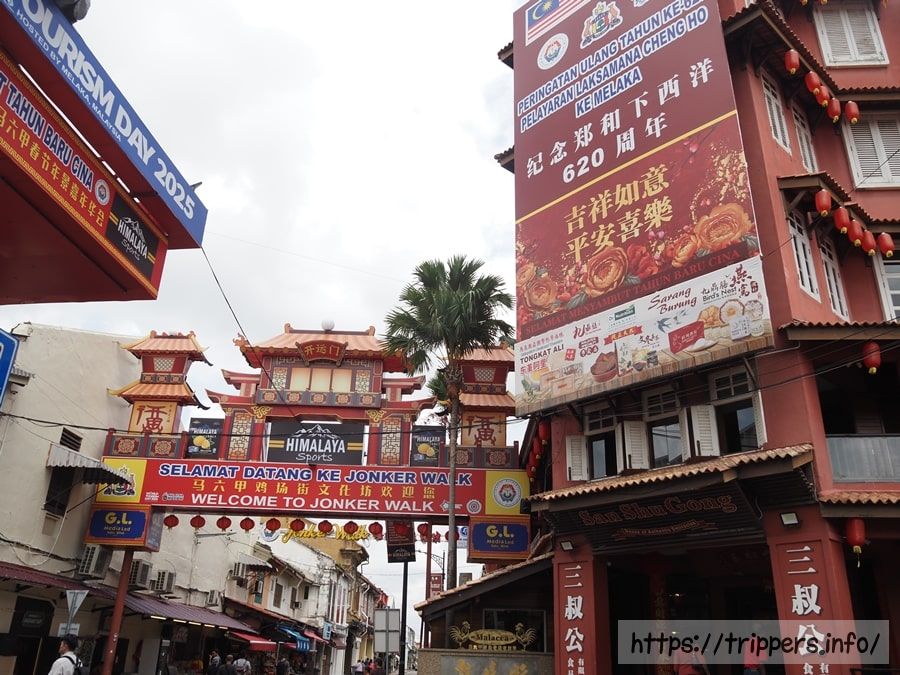 マラッカ川を越えるとジョンカーストリートの入り口にやって来ました。目の前には中国人観光客で混雑するらしいスーパーマーケット、三叔公(San Shu Gong)があります。