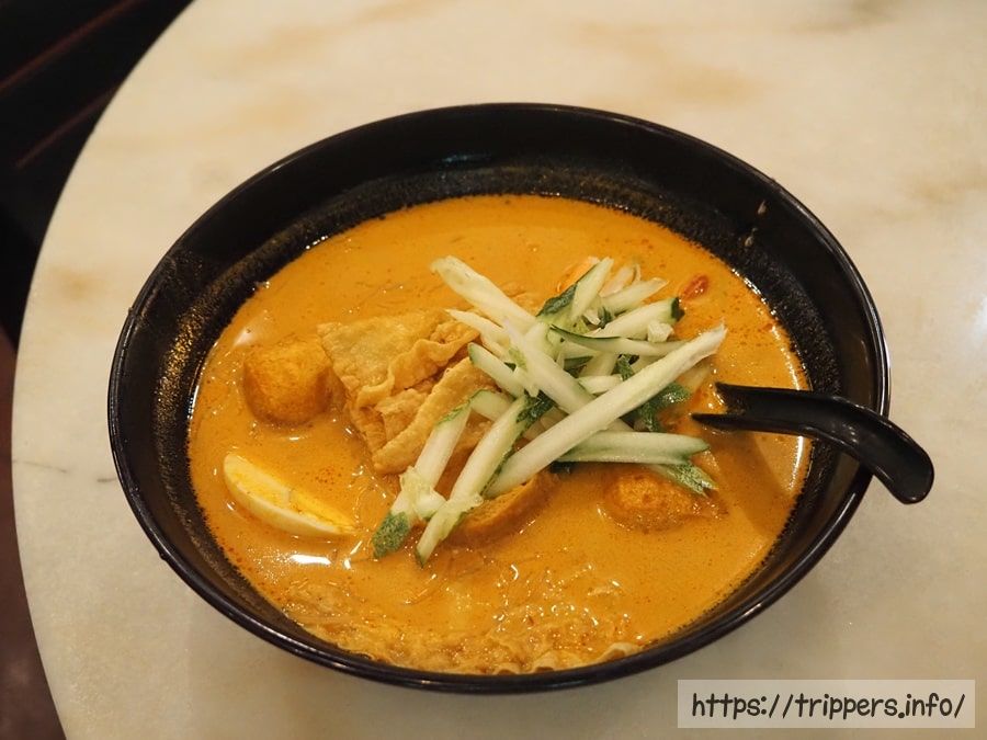 マラッカの名物料理ババラクサを頂きます。とってもスパイシーですが、コクが濃厚で、ココナッツミルクの滑らかさもあり、美味です。生野菜のきゅうりはお腹を壊さなかったです。