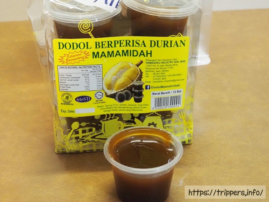 雨が僅かな時間だけ止んだので、側にあるMydin Bazar Melakaへ買い物しに行きました。ドリアン味のドドルが売っており、12個入って、10リンギット未満です。クアラルンプールのセントラル・マーケットでは、ばら売りで1個1.7リンギットと割高になります。