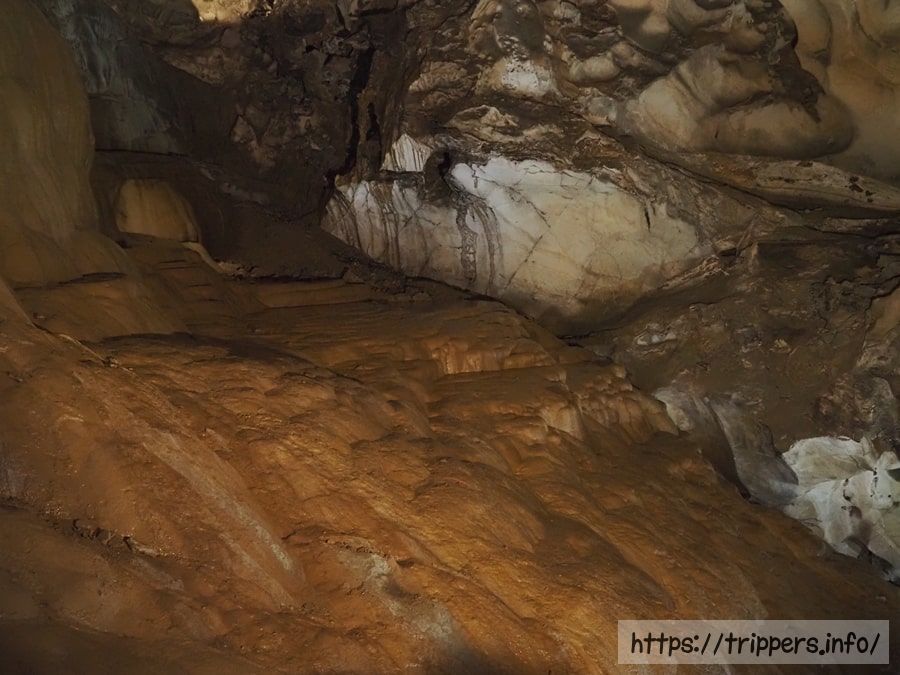 Golden Flowstoneと呼ばれる3番目の見所です。鍾乳洞を明るく照らすライトは白色で、カラフルではありません。自然のままの景色を堪能できます。
