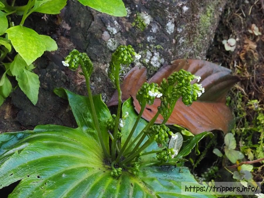 山野草が開花を始めていましたが、海外の植物は知識がないので同定できませんでした。時間をおいて再度調査すると、イワタバコ科モノフィラエア属(一葉種)の植物だと分かり、確実ではないですが、種名はMonophyllaea leuserensisだと判明しました。