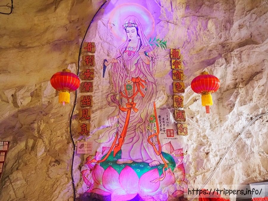 次は隣にある霊仙岩(Ling Sen Tong)です。天井が真っ黒なのは、蠟燭の煤がこべり付いているからです。