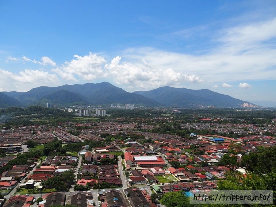 こちらが山頂からの景色です。イポーの街並みと山、そして青空の展望です。地面を歩いているだけでは分からない街並みがありました。