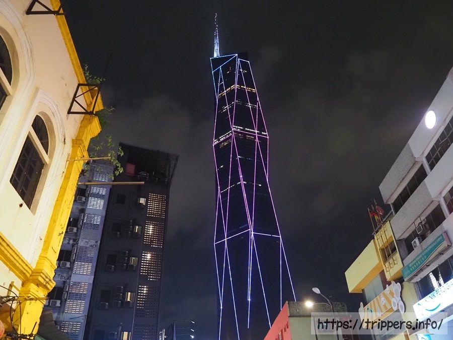 ムルデカ118がライトアップされていました。まだ中には入れないですが、展望デッキになる階があるため、そうしたらクアラルンプールの街並みを一望出来ます。現在だとペトロナスツインタワーの展望フロアが観光客に人気だと思います。