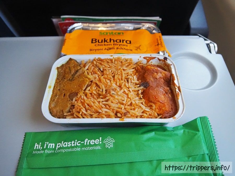 チキンビリヤニはマレーシア発の羽田空港着の飛行機で提供された夕食です。