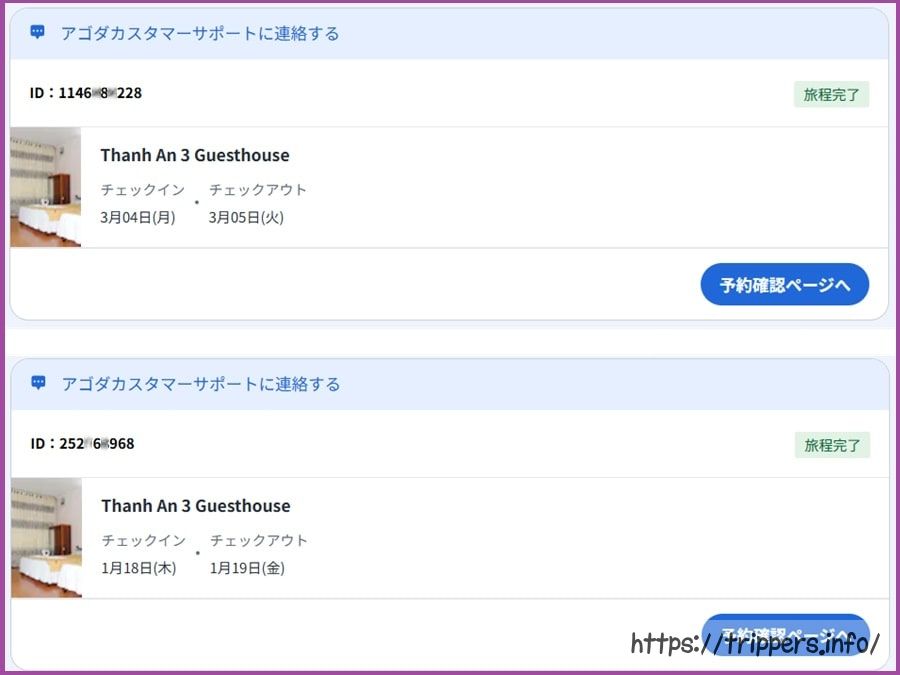 アゴダの予約番号(予約ID)が次の値だったら直接予約だとネットで書き込みがあります。①1から始まる10桁の番号だったら直接予約。もしくは②11から始まる番号だったら直接予約。