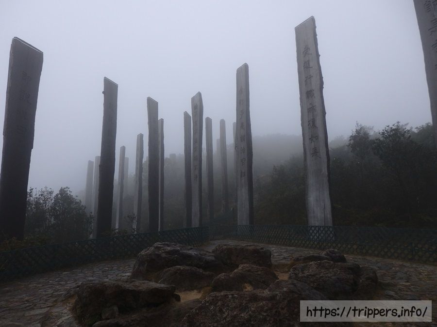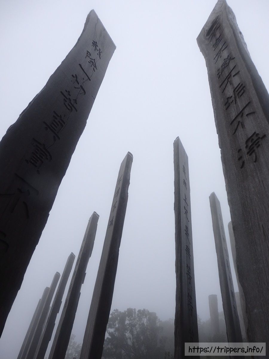 心経簡林には、無限大を意味する∞の形状に並んだ38本の木の柱があり、般若心経が書かれています。ランタオ島(大嶼山)の天壇大仏がある寶蓮寺の近くに位置するパワースポットです。高さが約8~10mある柱の1つ1つには、異なる摩訶般若波羅蜜多心経が刻まれており、人文科学者兼書道家である饒宗頤の刻印になっています。