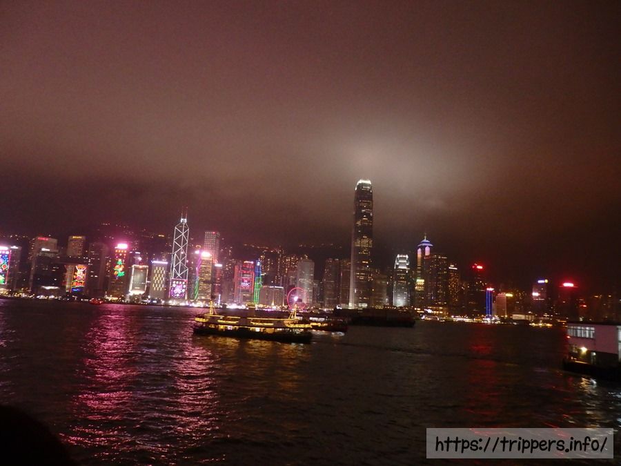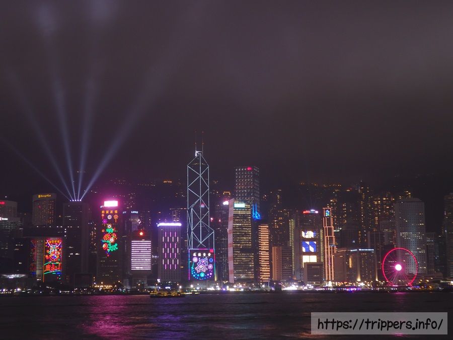 香港の夜空を彩る光と音のライトショーで「世界で最も長期間継続されている、大規模な光と音のショー」としてギネス世界記録に認定されました。香港島や九龍半島の主要な高層ビルから放たれる色とりどりのライトショーですが、パンフレットに載っている写真と比べると実際は非常にシンプルで迫力はありません。このショーは特に九龍半島から香港島を鑑賞するのが人気です。シンフォニー・オブ・ライツ(幻彩詠香江)は香港政府観光局が2004年1月17日から開催しており、最初は香港島の18棟のビルだけの参加でしたが、2005年には九龍半島のビルも参加し、2014年には47棟まで増えました。