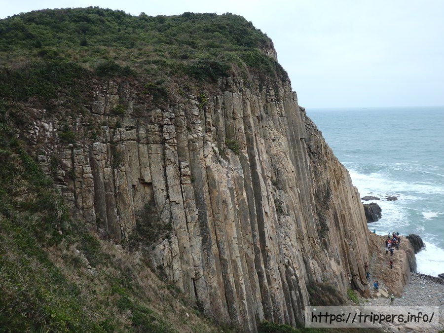 正式ルートと非正式ルートの合流地点には海岸へ降りる道があり、巨大な柱状節理を直に感じる事が出来ます。