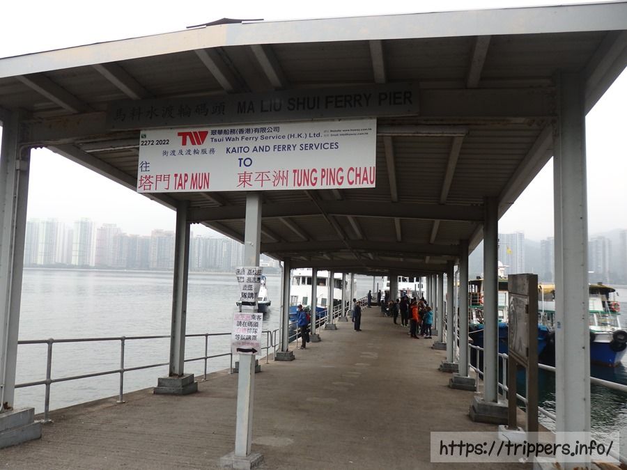 馬料水にあるフェリー乗り場は馬料水渡輪碼頭と馬料水三號梯台があり、場所が異なります。馬料水渡輪碼頭は東平洲や塔門、黃石、赤徑などへ行きます。東平洲への出発時間は9:00ですが、それ以外の行き先は8:30出発します。馬料水三號梯台は荔枝窩へ行くフェリーが出ています。土曜日のみ9:00だけでなく15:30馬料水出発もあります。帰りの便は17:15東平出発のみです。帰りのフェリーは40分前位から乗船可能になります。