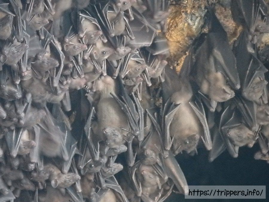 洞窟には無数のコウモリが生息