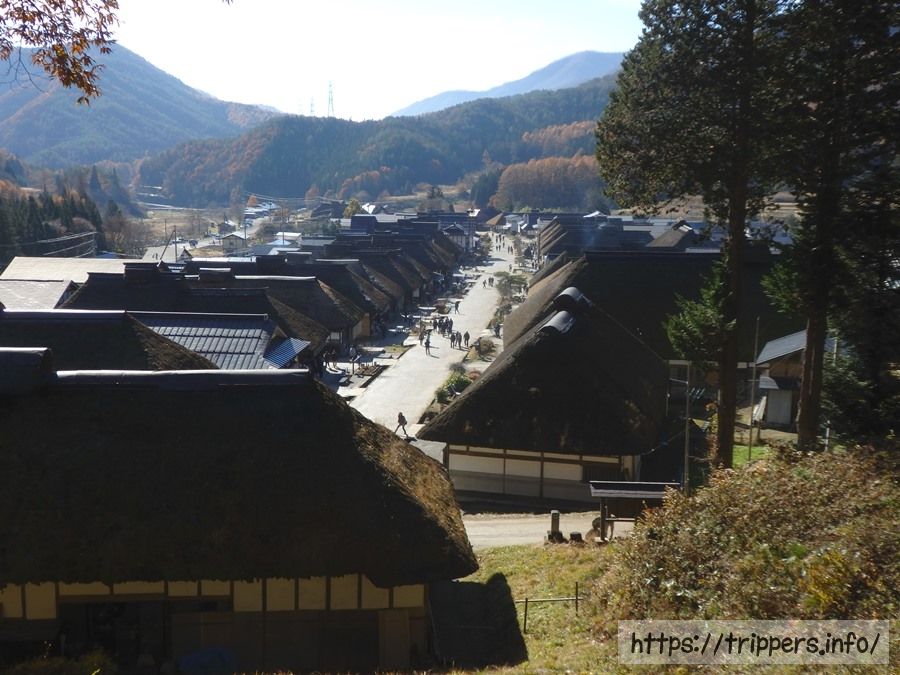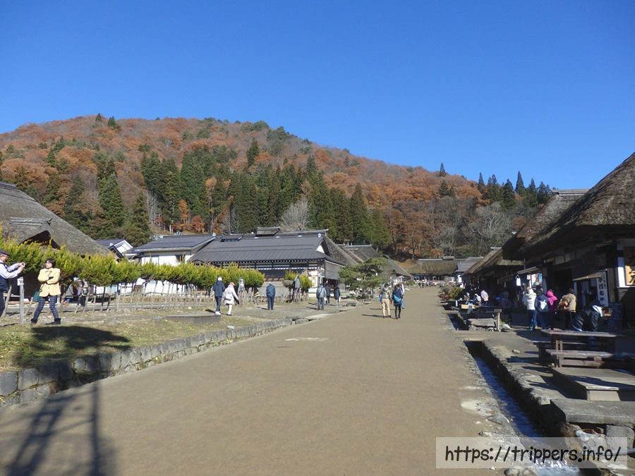 全長約450mの街道の両側には30軒以上の茅葺き屋根の民家が並んでおり、お土産屋や食事処になっています。