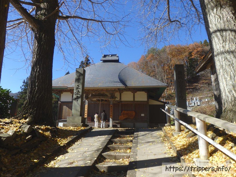 正法寺は宿場の突き当たりにあるお寺です。室町時代後期の1567年に建てられ、菩提寺として阿弥陀如来を祀っています。戊辰戦争の際に、大内宿は会津軍と新政府軍の激戦地になりました。新政府軍に利用されないように会津軍は宿場を焼き払おうとしましたが、村人たちの必死の頼みで免れ、現在に至っています。