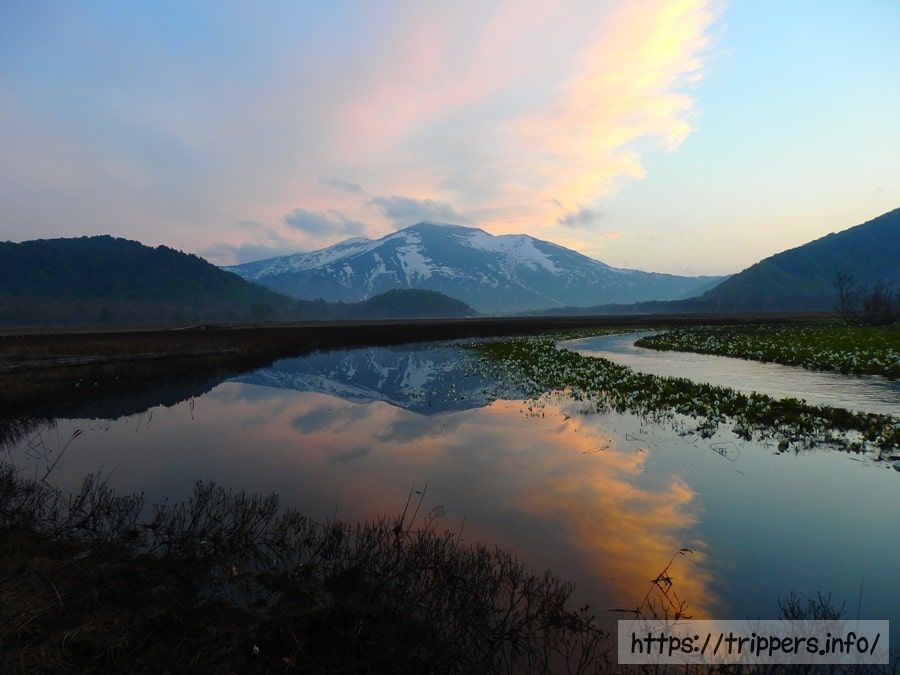 尾瀬国立公園とは、福島県、新潟県、群馬県の3県にまたがり、至仏山、燧ヶ岳、袴腰山、中原山など2000m級の山に全方向を囲まれた盆地状の湿原です。東側にある上流域の尾瀬沼で標高1660m、西側にある下流域の尾瀬ヶ原が標高1400m。高山植物の宝庫としても有名で春はミズバショウ、夏はニッコウキスゲで知られており、その他に春から秋にかけて様々な植物と生物を観察することができます。池塘と呼ばれる池が沢山あり、尾瀬ヶ原だけで1800個以上あると言われています。