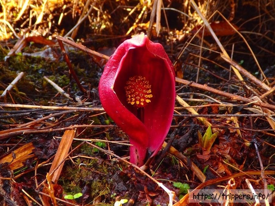 ザゼンソウはミズバショウと同じサトイモ科です。尾瀬ではザゼンソウの個体数はミズバショウと比べ、とても少ないです。