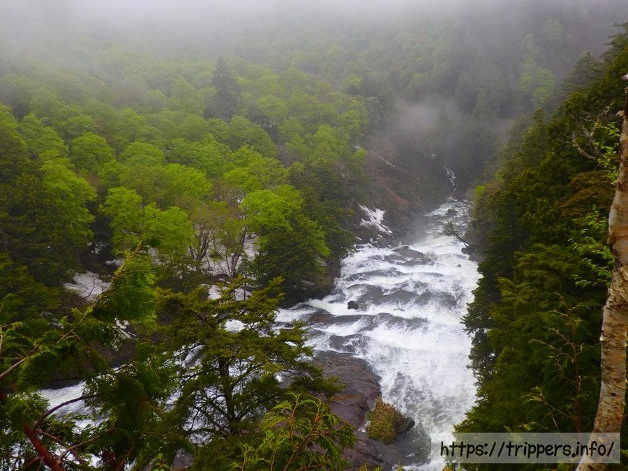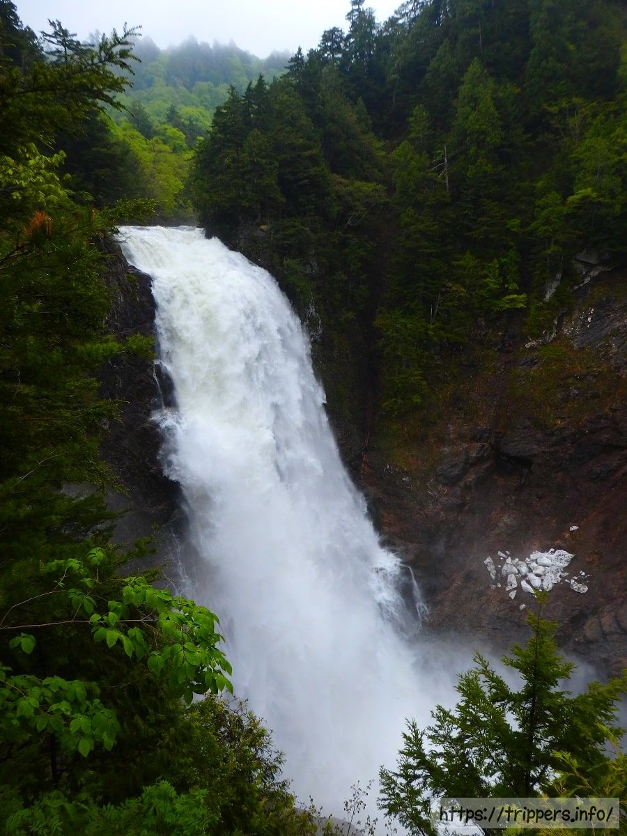 日本の滝百選に定められている。落差100m、幅30mの垂直落下する滝で規模としては日本最大級。