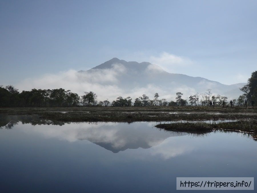 上田代には数多くの池塘が存在し、朝霧が発生した際とても幻想的な景色を見る事が出来ます。燧ケ岳がある方向を撮影すると逆光になるため何も加工せずに群青色の尾瀬を切り取る事が出来ます。