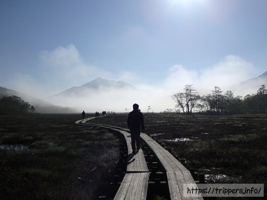 残雪時期は木道が見えない場所もあります。