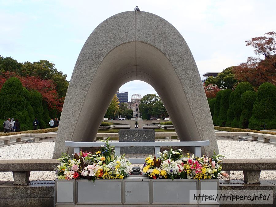 原爆死没者の慰霊と世界の恒久平和を願って爆心地に近い原爆ドームの側に建設されました。毎年、広島県広島市に原爆が投下された8月6日に広島平和記念式典が実施されます。現職のアメリカ大統領として初めてバラク・オバマが訪れた事でも知られています。