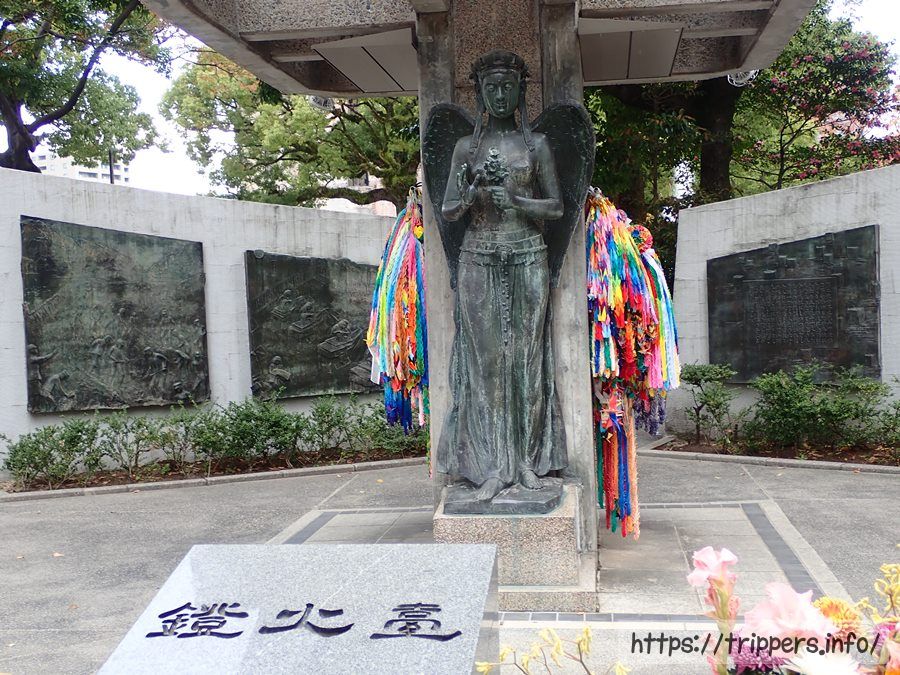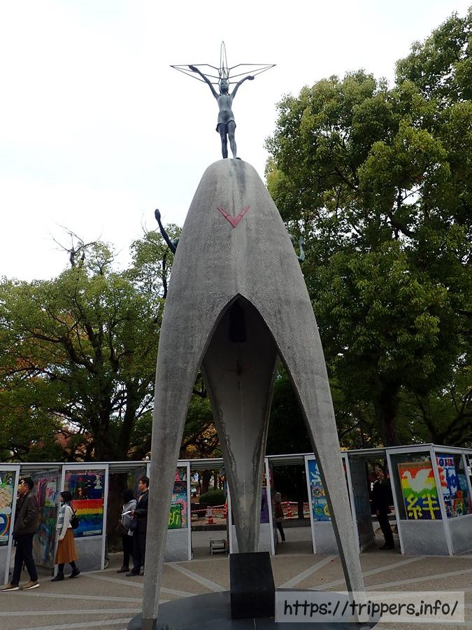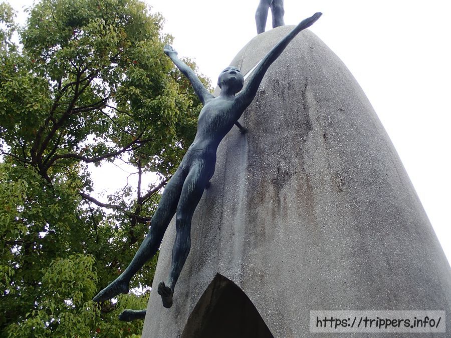その死に衝撃を受けた同級生たちが、「原爆で亡くなったすべての子供達のために慰霊碑を作ろう。」と全国へ呼びかけ、全国の生徒と世界9か国からの支援により、完成したのが高さ9mのこのブロンズ像です。