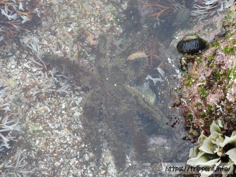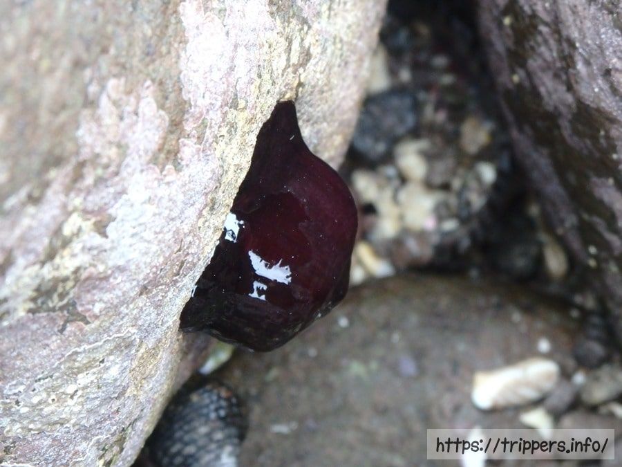 ウメボシイソギンチャクは潮が引いて触手を引っ込めた状態では、名前の通り梅干しに似ており、直径5cmほどの赤茶色の塊です。