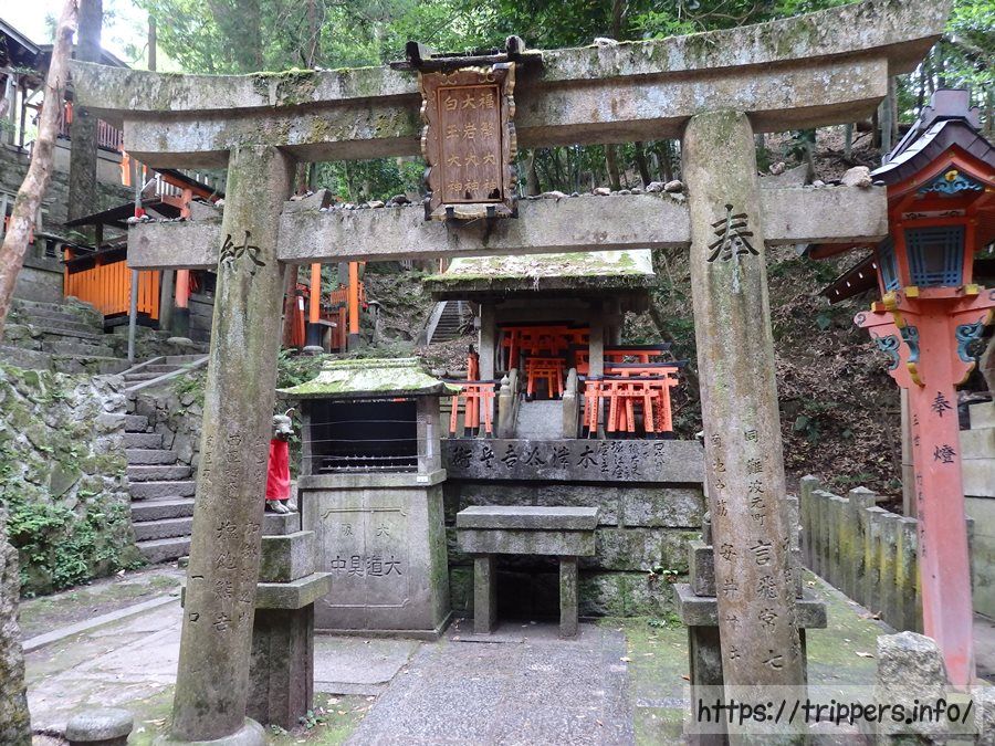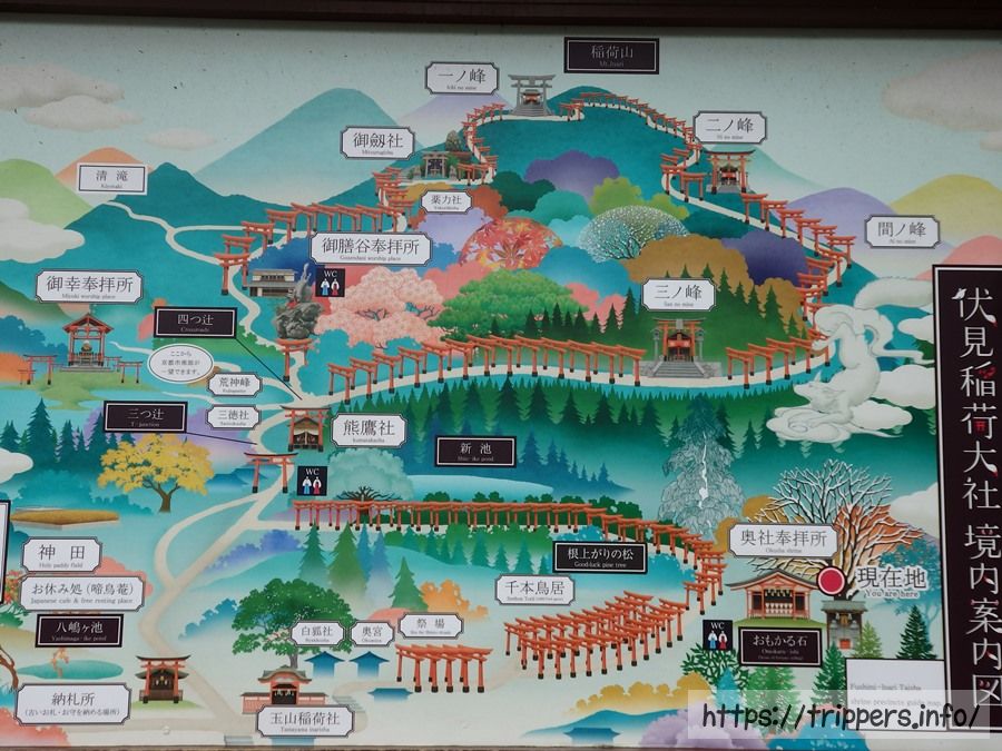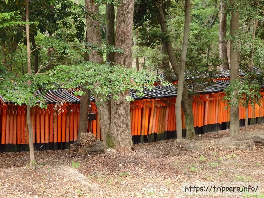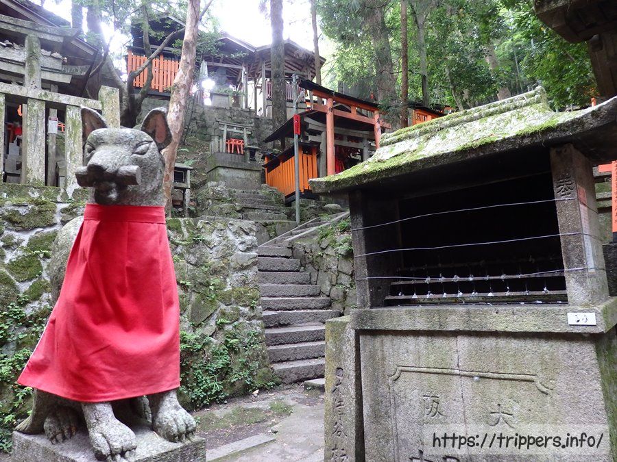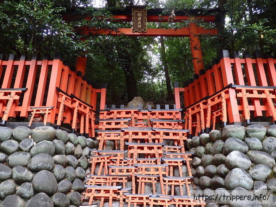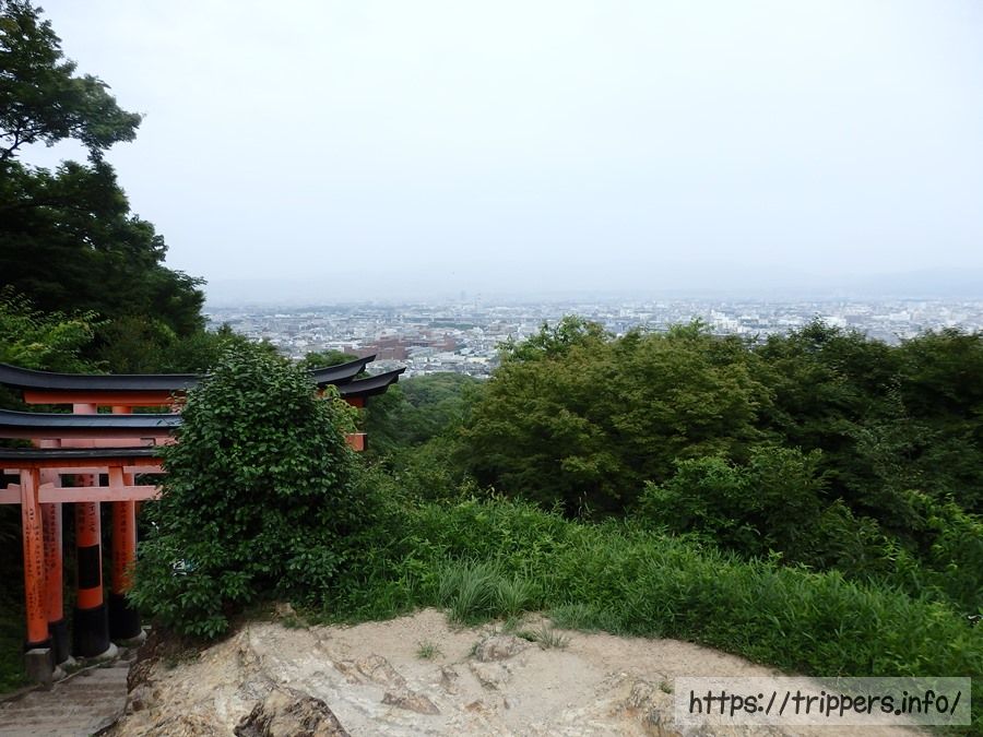 お山めぐり参道において、下から登ってきた路、稲荷山山頂への上り道と下り道、東福寺方面に降りる路の4つの道が交わるポイントが四ツ辻です。街を見下ろす事ができ、ここから山頂へぐるっと一周する事ができます。1864年創業の茶店「仁志むら亭」があります。