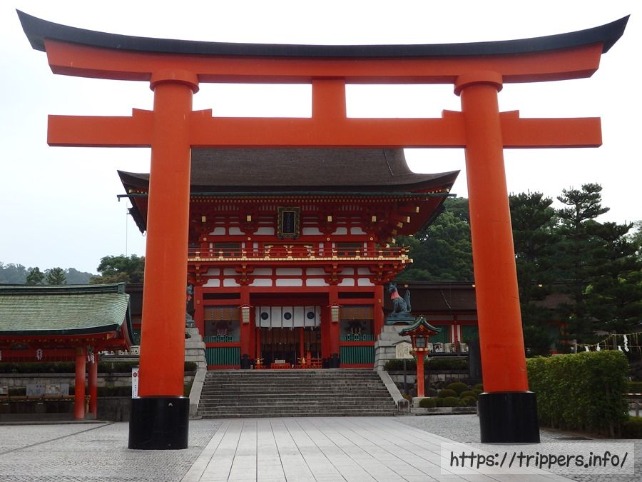 伏見稲荷大社とは、全国に約3万社あると言われる稲荷神社の総本宮です。朱塗りの鳥居が約1万基並んだ神社の中で、「千本鳥居」は圧巻の伝統美があり、参拝客に人気です。御祭神である稲荷大神様が伏見稲荷大社がある稲荷山に鎮座したのは711年2月初午の日と長い歴史があります。稲荷山は標高約233mで、1周約4kmのお山めぐりをすると約2時間ほど時間がかかります。祭神は宇迦之御魂大神、佐田彦大神、大宮能売大神、田中大神、四大神の五柱です。これらは稲荷神の広大な神徳の神名化とされており、重要文化財に指定されている本殿に奉祀されています。稲荷神は五穀豊穣を司る神でしたが、時代とともに商売繁昌や安産や、万病平癒、学業成就などの神としても信仰されるようになりました。