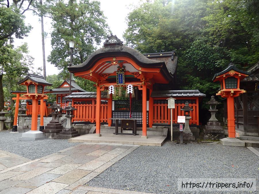 玉山稲荷社は1875年に造られた重要文化財です。玉山稲荷社の御祭神は見稲荷大社の御祭神の分霊です。江戸時代中期、東山天皇により宮中鎮守として伏見稲荷大社より迎えられ、宮中に祀られていました。天皇崩御の後は松尾月読神社の社家である松室重興氏の私邸内に御祭神は遷座しましたが、1974年伏見稲荷大社に戻ってきました。