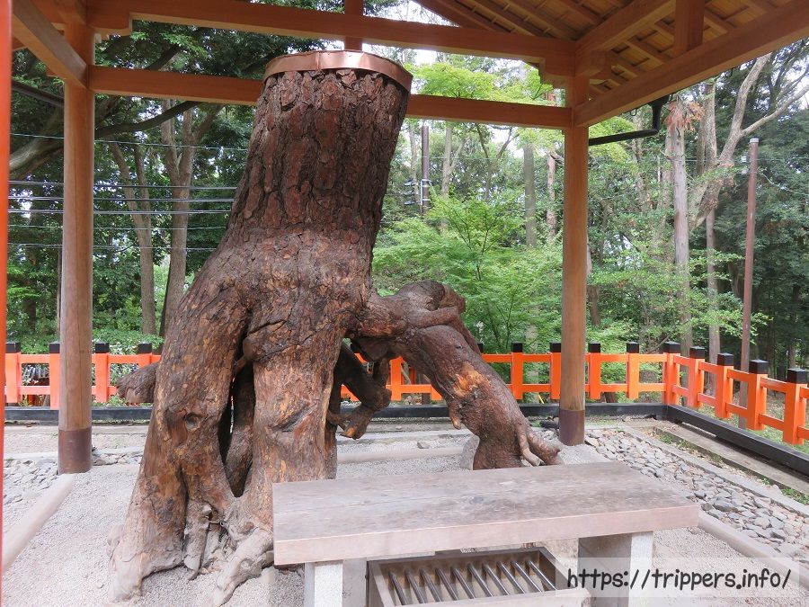 一方の根が地表に持ち上がっている形状から「根上がりの松」と呼ばれているご神徳がある松です。持ち上がった松の根が人々がひざまずいてお祈りする姿に似ていることから「膝松さん」とも呼ばれ。松の根元をくぐったり、木の肌を撫で、体の痛むところを撫でると痛みが治ると言われています。