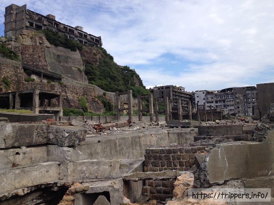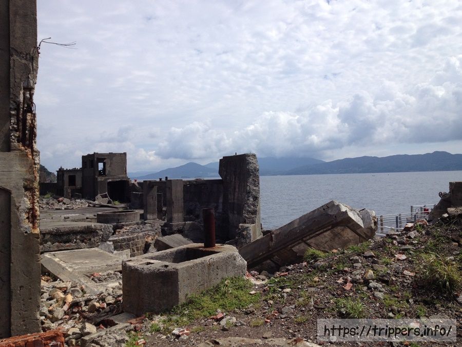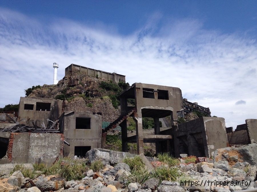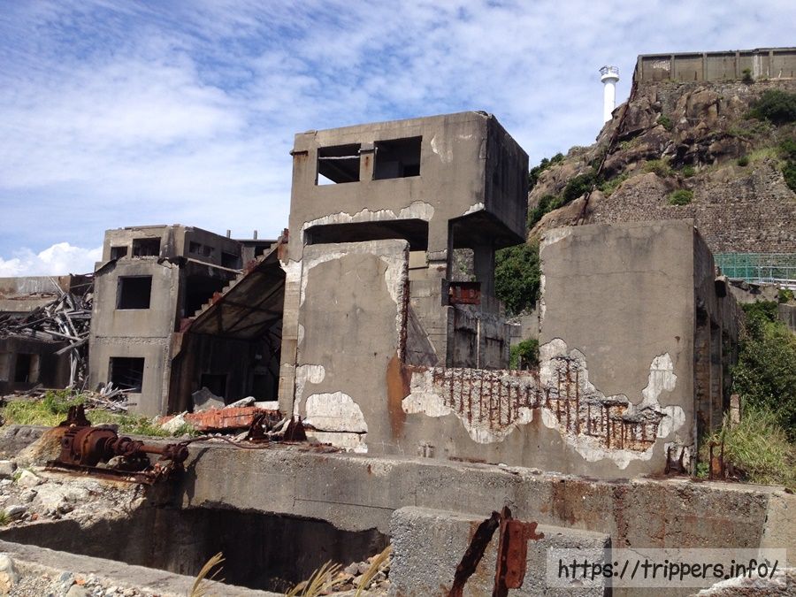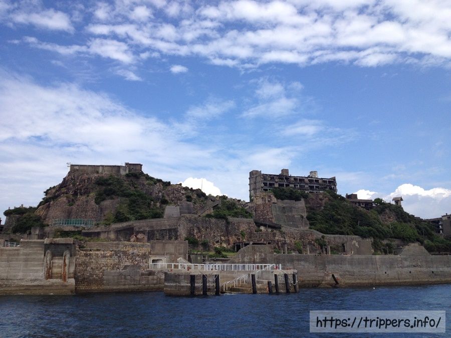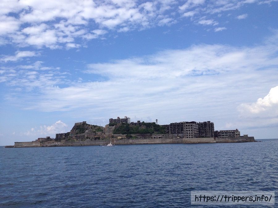 軍艦島とは、長崎港から南西およそ19kmの沖合いに位置する端島です。南北に約480m、東西に約160m、周囲は約1200m、面積は埋め立て工事によって、本来の約3倍の面積に拡張され0.063 km²になりました。端島は海底炭鉱の島で、岸壁が島全体を囲い、高層鉄筋アパートが立ち並ぶ外観が軍艦「土佐」に似ていることから「軍艦島」と呼ばれるようになりました。2015年、国際記念物遺跡会議(イコモス)により、軍艦島を構成遺産に含む「明治日本の産業革命遺産 製鉄・製鋼、造船、石炭産業」が世界文化遺産に登録されました。