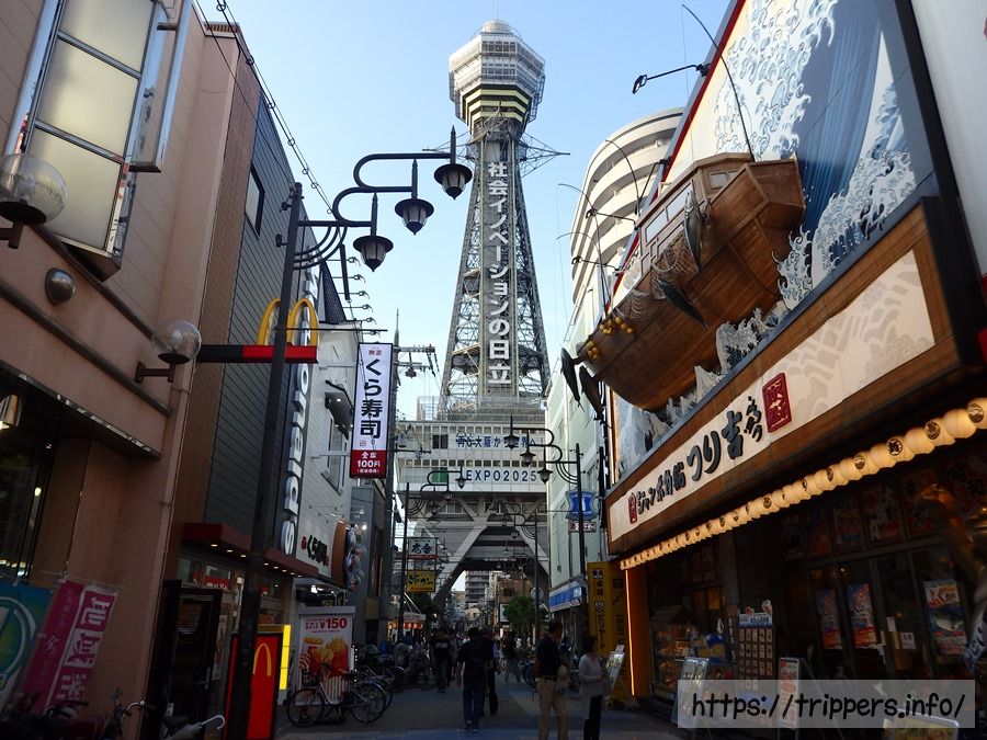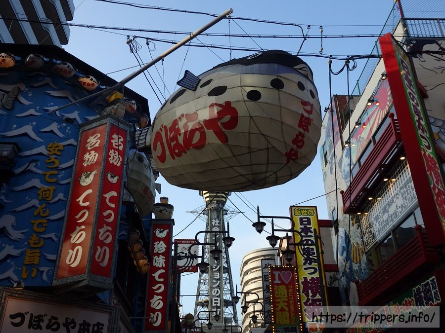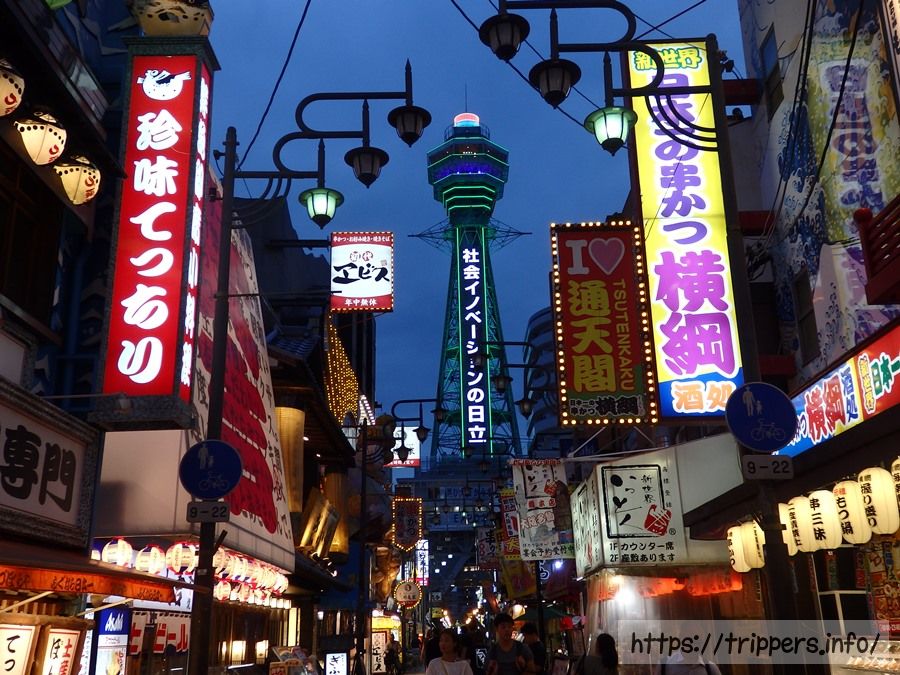 通天閣の周囲には大阪土産や大阪名物のお店が所狭しと並んでいます。初めて大阪観光に来て、タレに2度漬け禁止の串カツや鉄板焼きを食べるなら、新世界か道頓堀が人気です。