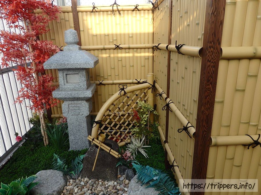 ここに庭園を造ってしまうとは、もはや何でもありの気質を感じますが、その中でも竹垣や石灯籠など和のテーマにこだわって造られています。