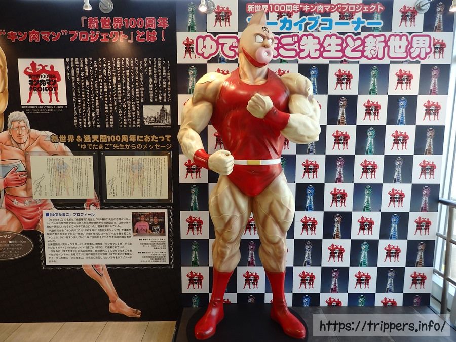 2Fには「キン肉マン」のアーカイブコーナーがあり、等身大のロビンマスクや漫画の複製原画、グッズコレクションの展示があります。