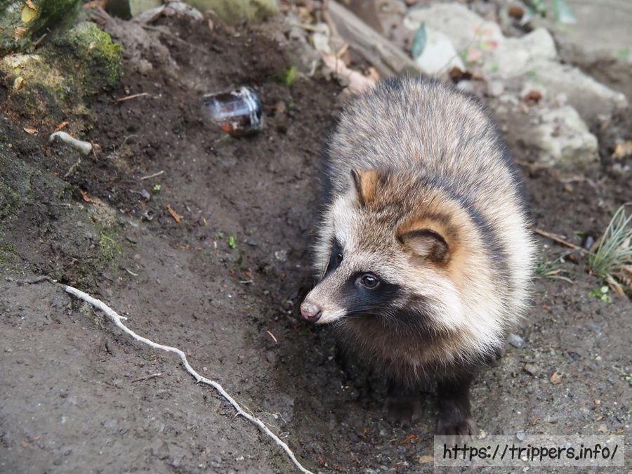 お店にはタヌキが居着いています。