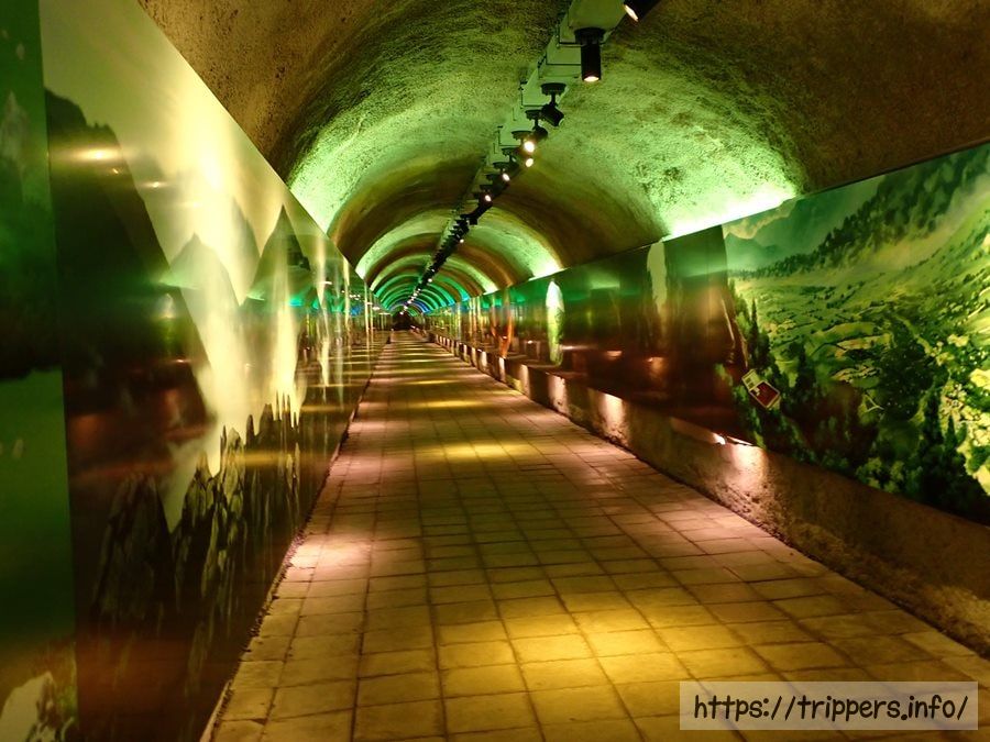 入口は2ヶ所あり、どちらからでも入退場できます。団体割引や障がい者割引があります。秋芳洞黒谷入口から入ると、最初に地球誕生から現代までの秋吉台をイメージした3億年のタイムトンネルを通過します。