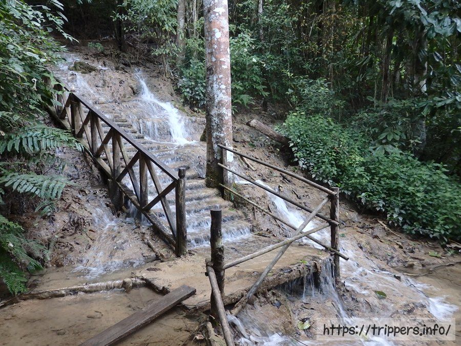 落差50mの滝の左側には登山道があり、そこを登って行くと滝が落下する場所へ行く事が出来ます。観光客の数は一気に減ります。乾季なら靴が濡れずに20分程で登りきる事が出来ます。