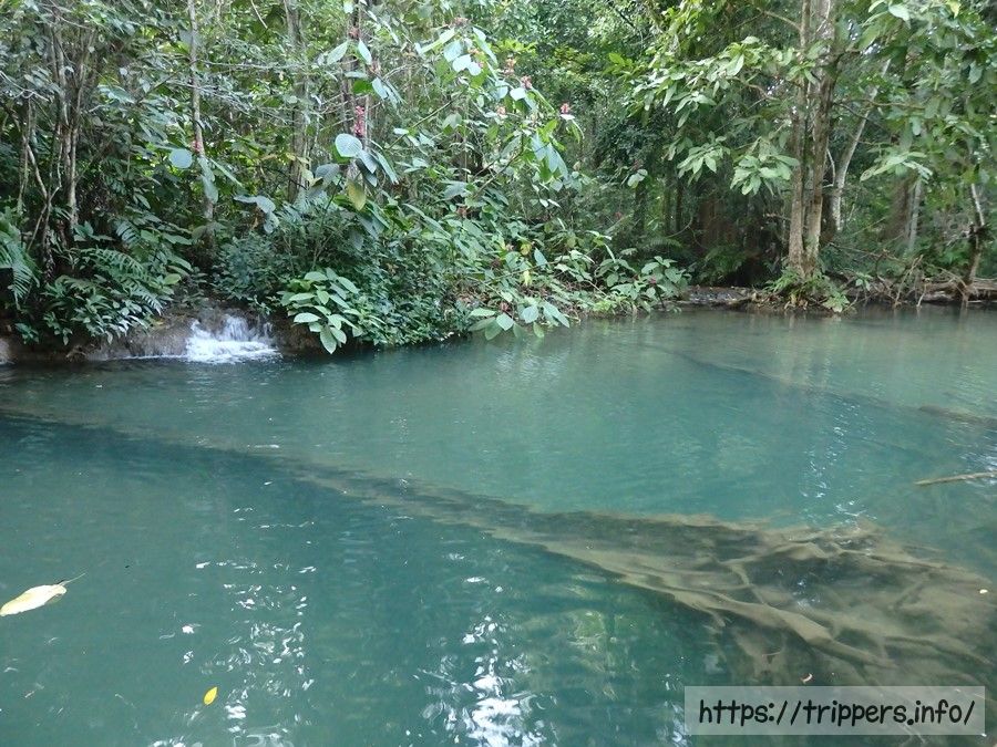 雨季の方が水量があります。乾季なら水の色は綺麗です。