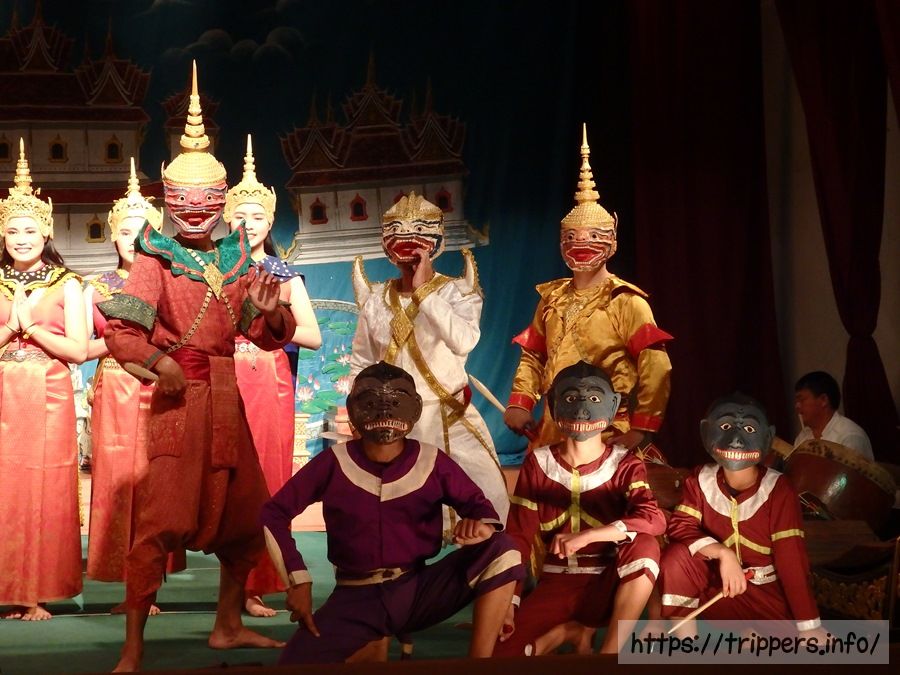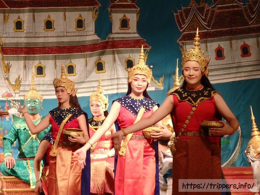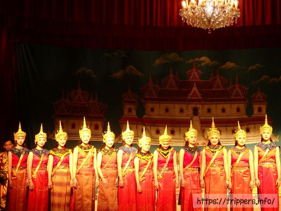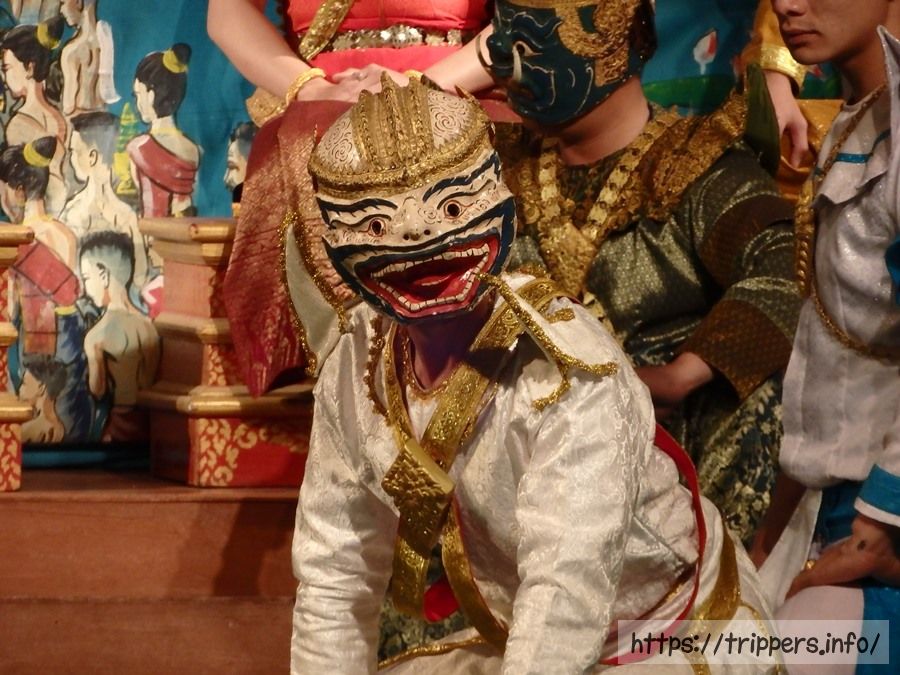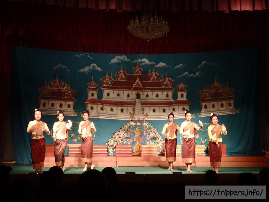ルアンパバーン国立劇場の伝統舞踊とは、フランス統治時代に王宮だったルアンパバーン国立博物館の敷地内にある、国立劇場で開かれるラオスの伝統舞踊「パーラックパーラム」です。ラーマヤナ(古代インドの大長編叙事詩)のラオス版の事で、伝統楽器の生演奏に合わた踊りで物語が披露されます。言葉が理解できなくても楽しめる踊りや仕草をメインとしたシンプルな舞台です。個性的な衣装やお面、動物役の仕草など見所はあります。ラオスの歴史や文化を国立劇場で体験できる数少ない場所です。