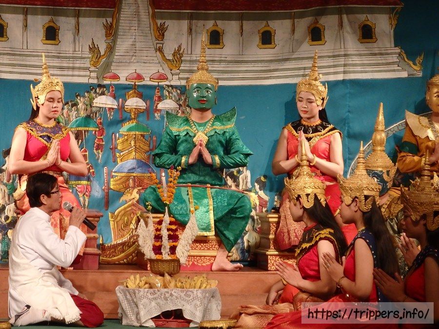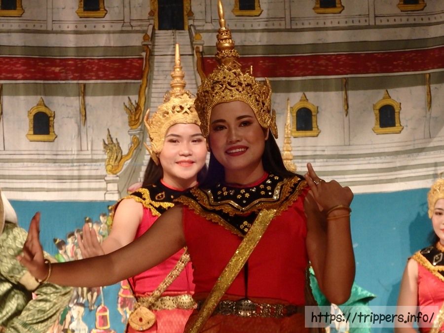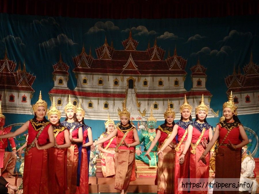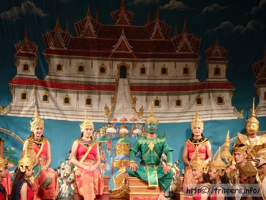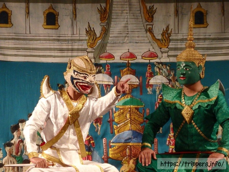ルアンパバーン国立劇場の伝統舞踊とは、フランス統治時代に王宮だったルアンパバーン国立博物館の敷地内にある、国立劇場で開かれるラオスの伝統舞踊「パーラックパーラム」です。ラーマヤナ(古代インドの大長編叙事詩)のラオス版の事で、伝統楽器の生演奏に合わた踊りで物語が披露されます。言葉が理解できなくても楽しめる踊りや仕草をメインとしたシンプルな舞台です。個性的な衣装やお面、動物役の仕草など見所はあります。ラオスの歴史や文化を国立劇場で体験できる数少ない場所です。