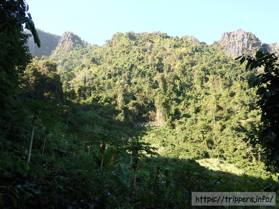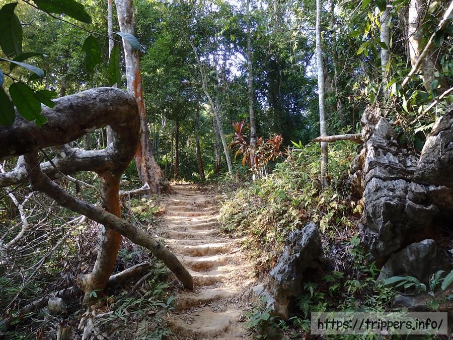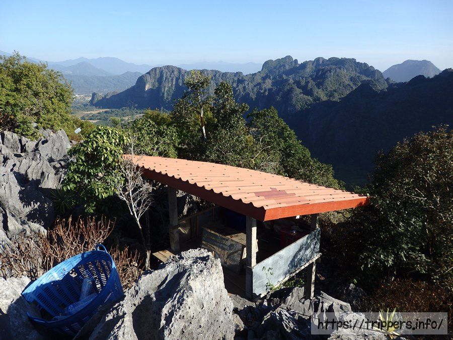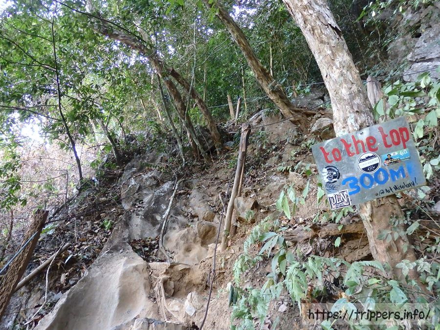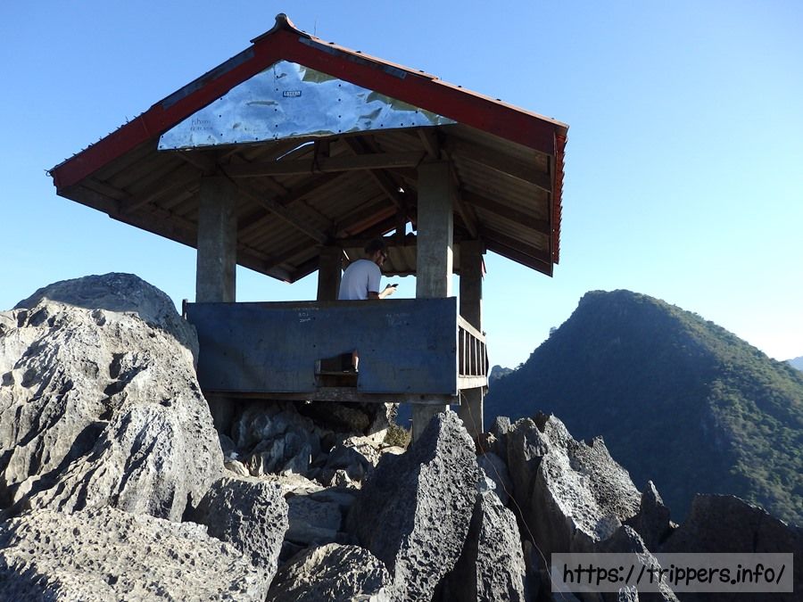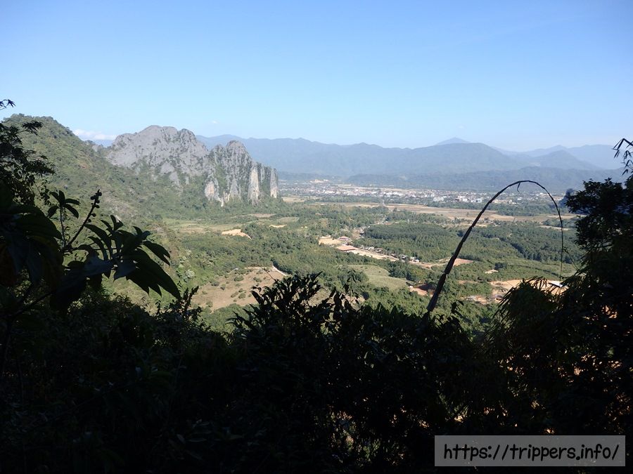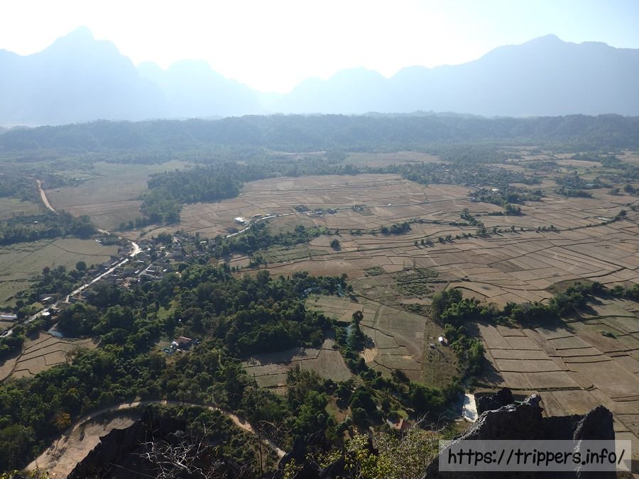 ファンギャンとは、バンビエンのカルスト地形にある山の崖で展望台になっています。ファ・ンギャンには3つのビューポイントがあり、シルバークリフ(Silver Cliff)は他の2つとは別の登山口です。3つともトレイルロードで繋がっています。他の2つは同じ登山口から行けるPha Ngern ViewpointとPha Ngern Cliff View Point 2です。View Point 2は2つの展望箇所があります。登山口から山頂までの時間は30分です。登山道は急な登りが続きますが、整備されています。山頂付近はナイフのように鋭利な石灰岩になっています。