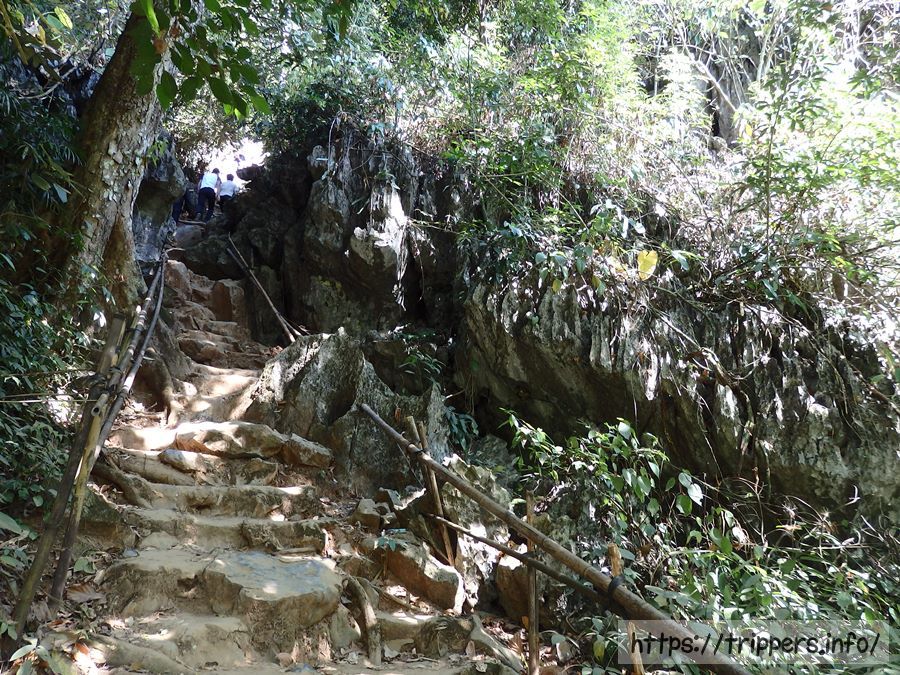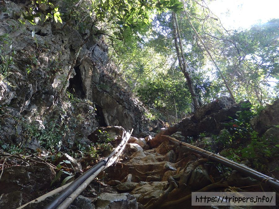 洞窟へは山道を登って行きます。距離は短いですが勾配があり、石灰岩がむき出している場所は転ぶと怪我の危険があります。