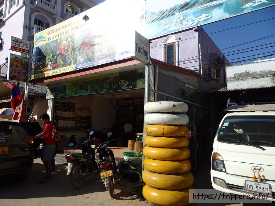 バンビエンの街にチュービング屋があります。