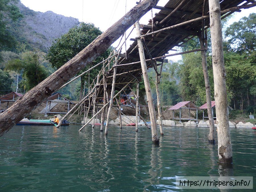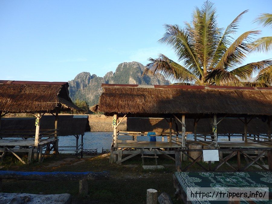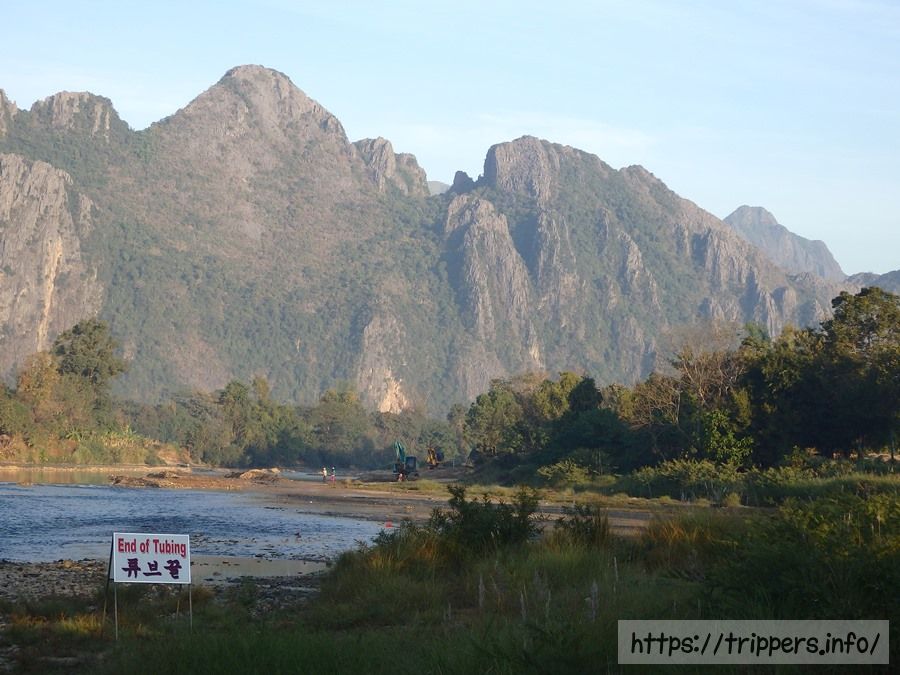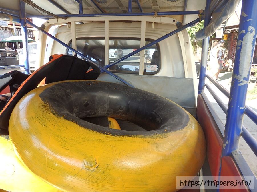 チュービングを中断する場合は、自分の好きな場所で岸にあがりチュービング屋に電話すればお迎えのトゥクトゥクが来てくれます。お迎えは無料です。