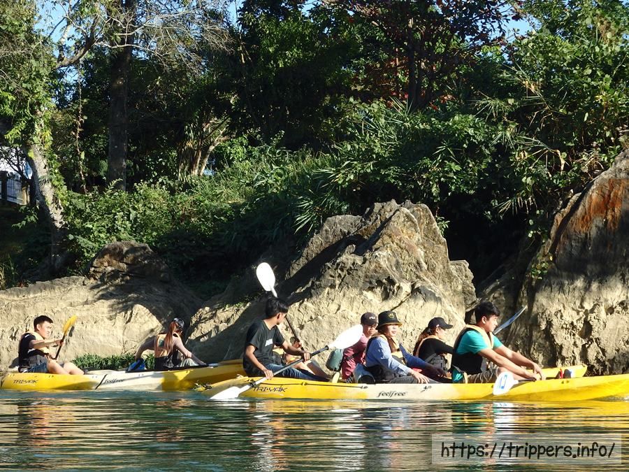 チュービングは欧米の観光客に人気のようです。カヤックやモーターボートはアジア人に人気のようで団体ツアーに組み込まれています。バンビエンを観光する一般的な団体ツアーは日本にはまだなく見かける日本人は個人観光客ばかりですが、中国や韓国には既にあるようです。