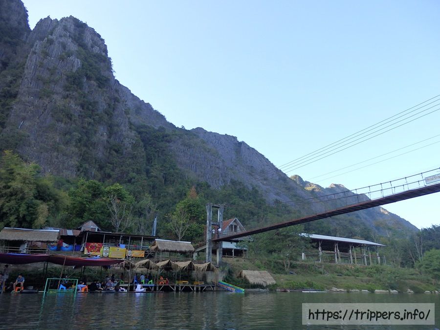 バンビエンの街に沿って流れるナムソン川には誰でも楽しめるアクティビティーがあります。観光客に人気のチュービングやカヤック、モーターボートです。チュービングとはタイヤチューブに乗って川を流れていく川下りです。カルスト地形特有の石灰岩の山々を目の前に眺めながら、自然を満喫できます。川岸はバーになっており、ドリンクを購入し飲みながら川下りをすることができます。雨季と乾季では川の水量が変わり、流れの速度も変わってきます。