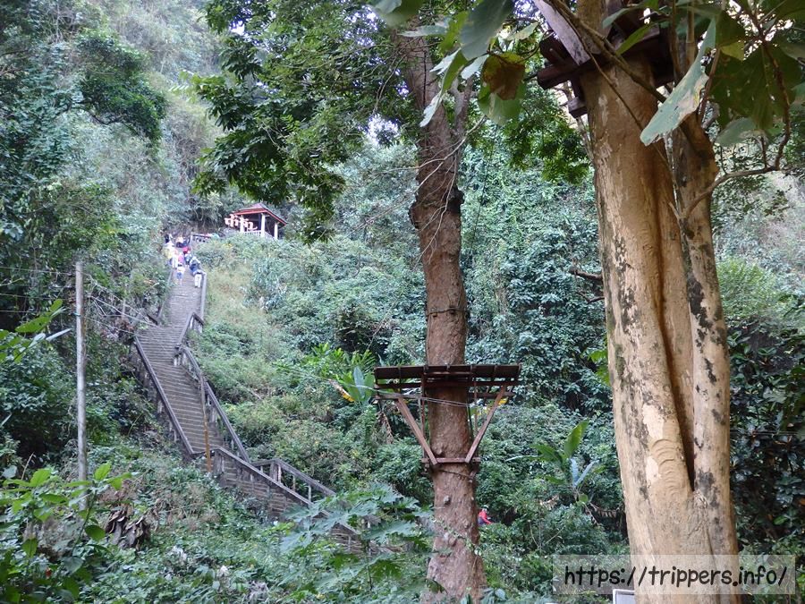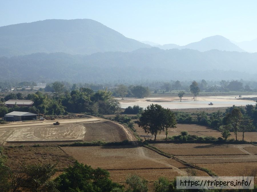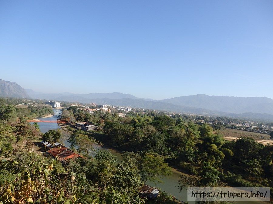 鍾乳洞内には、外の景色が見られる場所があります。ここに来るのに渡った橋や、田畑、ナムソン川などを見下ろせます。街の中心部から随分離れた場所にいることが分かります。