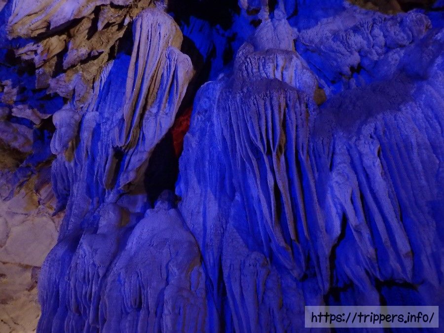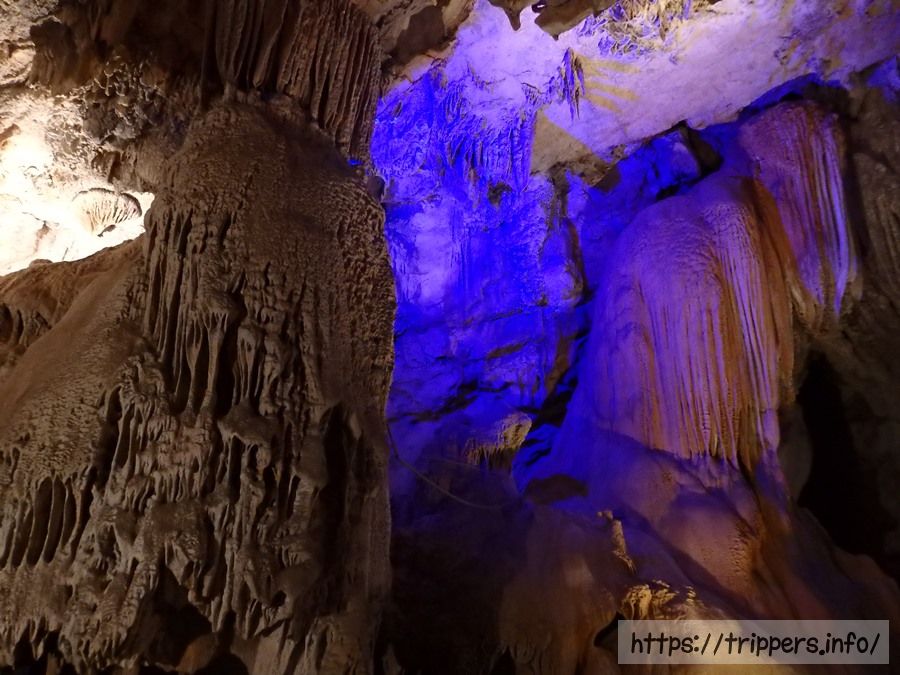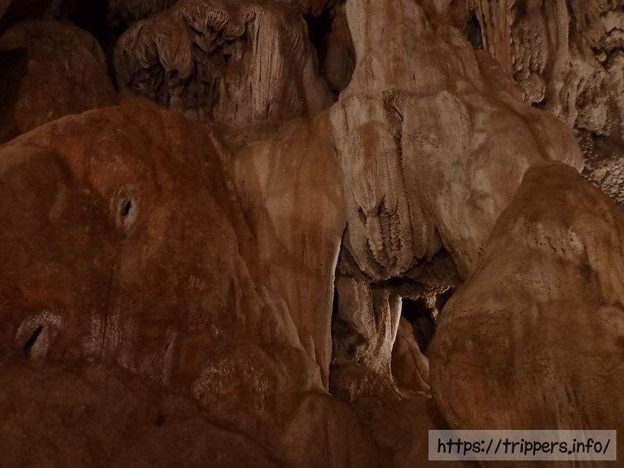 バンビエンは石灰岩などの水に溶解しやすい岩石で構成されたカルスト地形です。鍾乳洞とは、石灰岩が雨水や地下水などによって侵食されてできた洞窟であり、浸食によって様々な形の鍾乳石や石筍が創造されます。