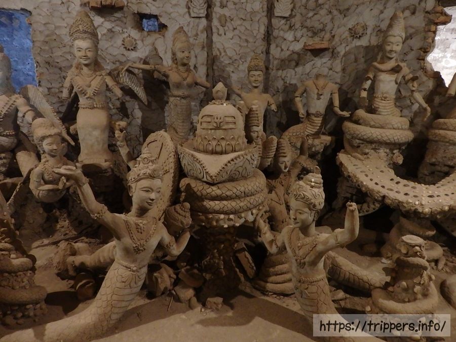 屋上からは、鉄筋コンクリートで造られた仏像の数々が良く分かります。中でも一番左にある巨大な涅槃仏が目立っていますが、全長40mほどあります。立体的なのにサブレのように平べったい感じが、程よいクオリティーと独特な感性を惹き立てています。