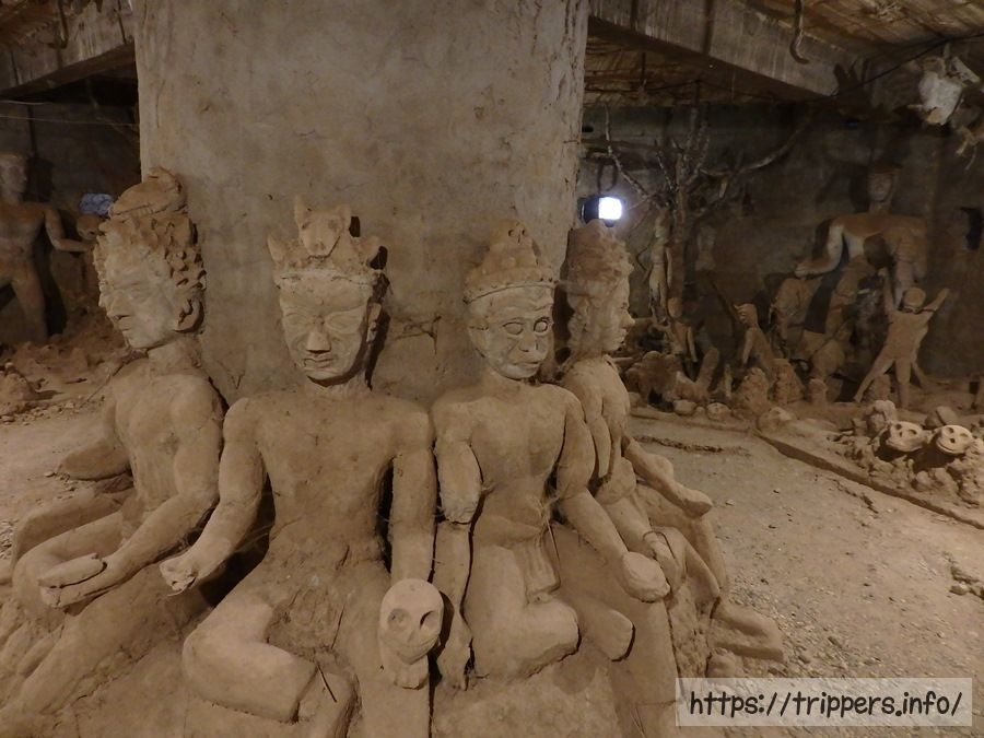 屋外の彫像と異なり、土で造られており、腕や頭が壊れてなくなっている個体が多くあります。